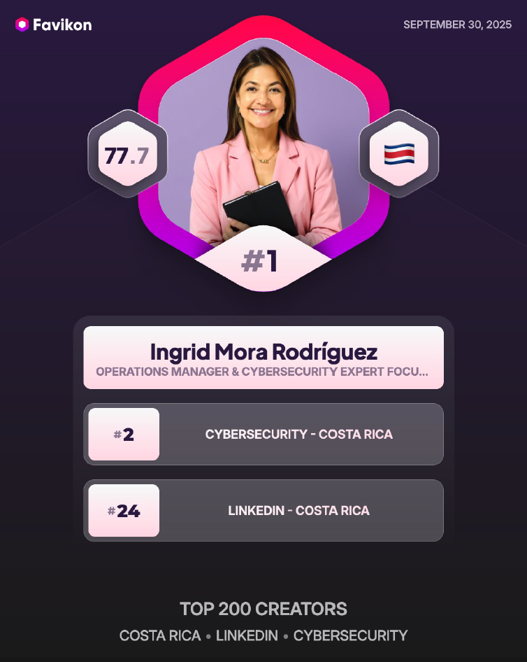 En el 2025, llegué a ser #1 en el ranking de Ciberseguridad #2 en Tecnología y #24 como creadora de contenido en Costa Rica.
